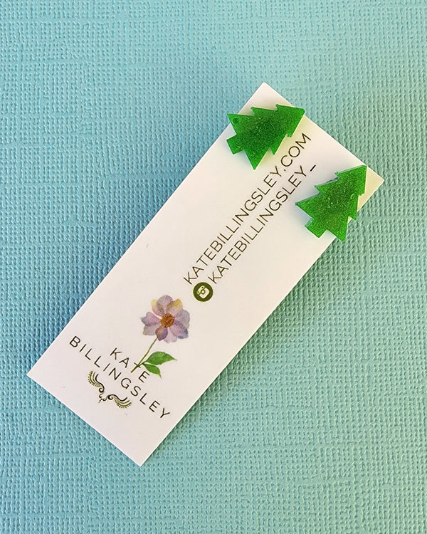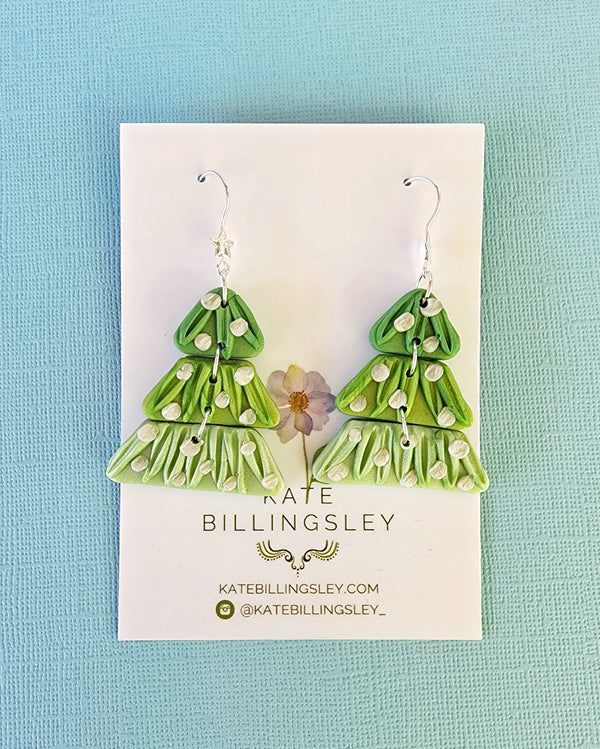 Christmas Tree Green with Gold Stars Designer Dangles - Polymer Clay