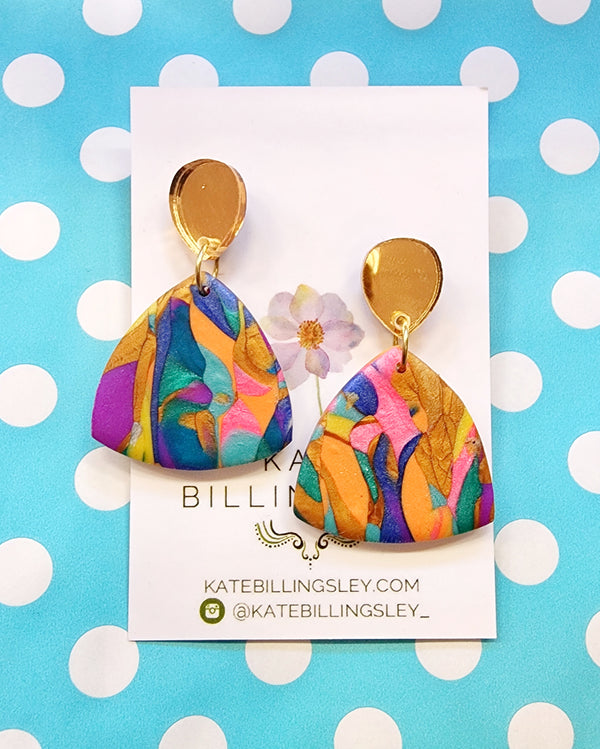 Multicolour Reuleaux Small Designer Dangles - Polymer Clay