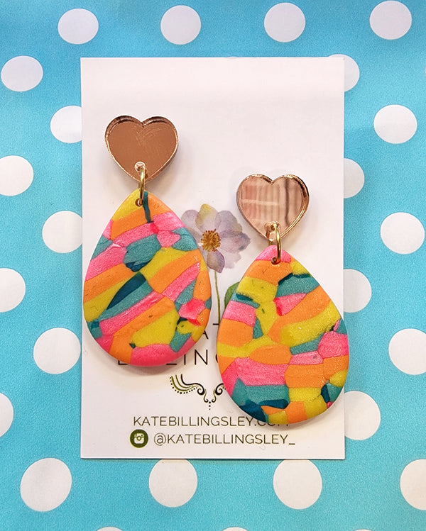 Pink Orange Teardrop Medium Designer Dangles - Polymer Clay