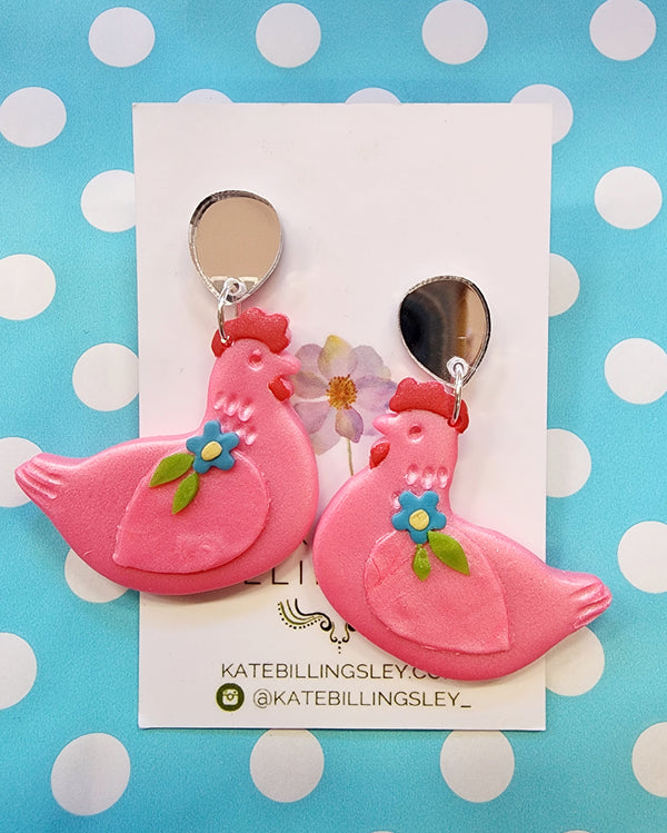 Chicken pink Medium Designer Dangles - Polymer Clay